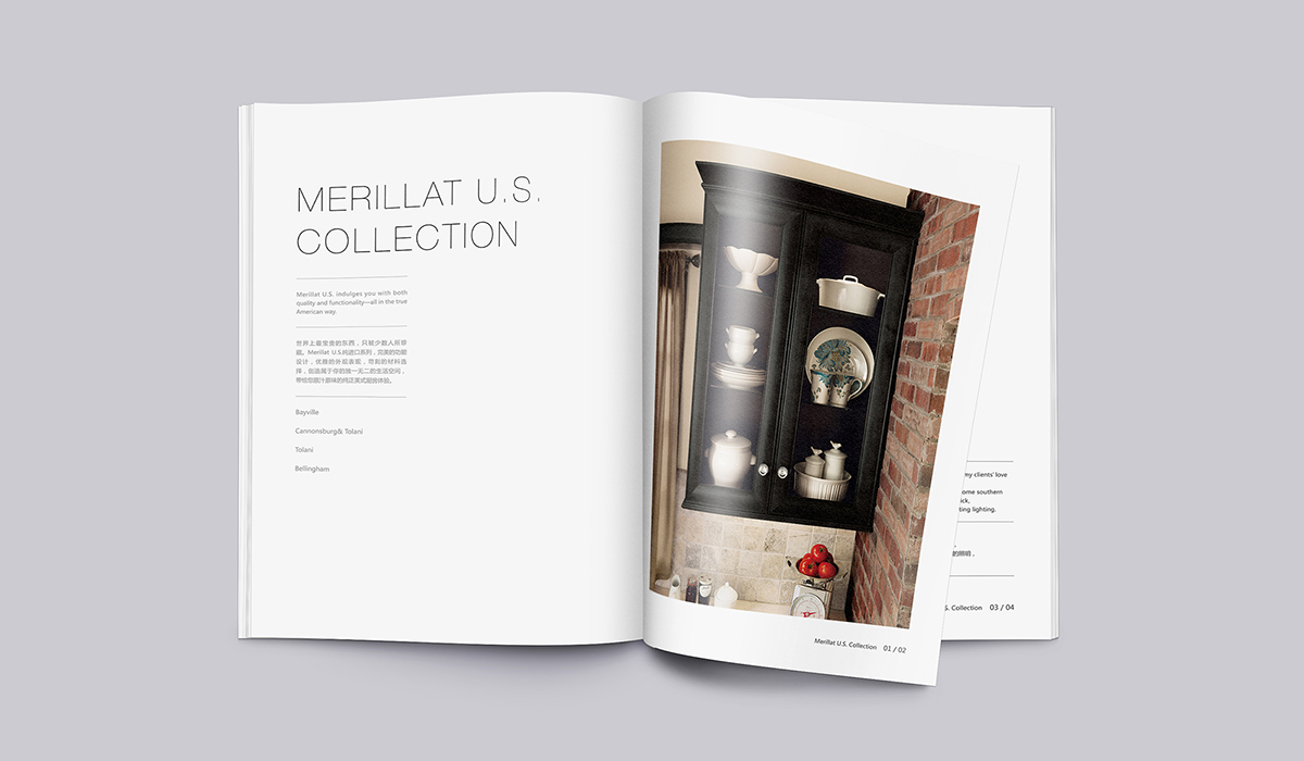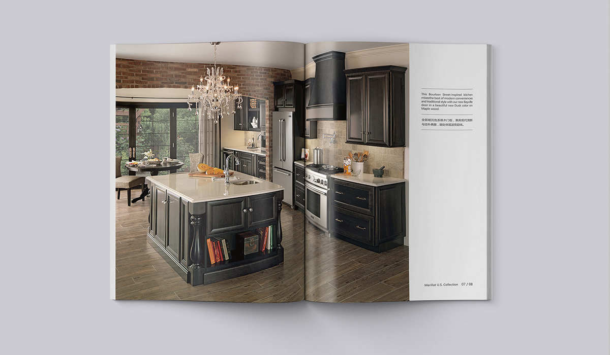 為Merillat美睿廚房打造出符合中國(guó)高端市場(chǎng)的國(guó)際化形象,品牌涉及研發(fā)、生產(chǎn)、銷售到宣傳所需要的整套系統(tǒng)性的形象建設(shè),正午嚴(yán)謹(jǐn)配合各項(xiàng)目具體落地執(zhí)行;在產(chǎn)品畫(huà)冊(cè)中,涵蓋了空間場(chǎng)景設(shè)計(jì)、拍攝腳本、產(chǎn)品軟裝、后期3d合成、畫(huà)冊(cè)設(shè)計(jì)等全案的策劃與實(shí)施。