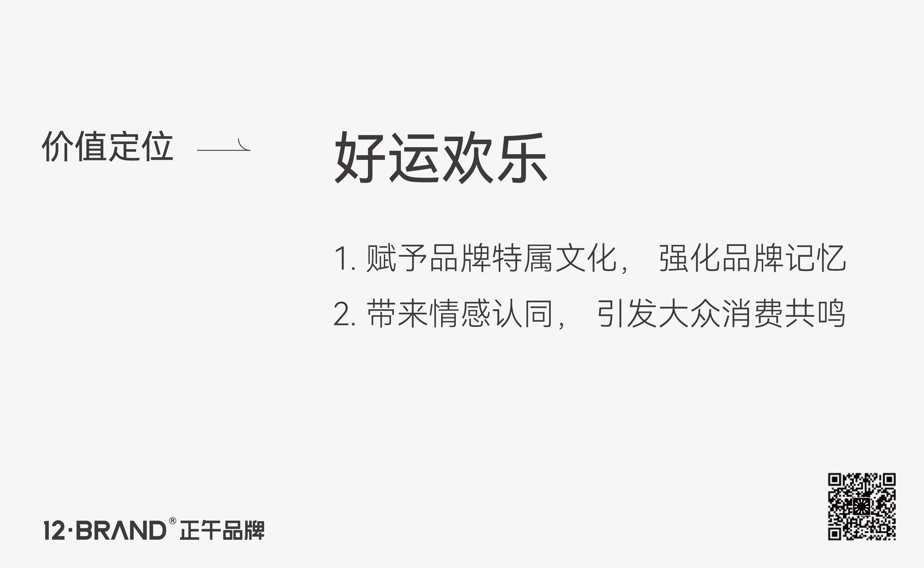 在這充滿焦慮與不確定性的疫情時(shí)代,我們將“好運(yùn)歡樂”確立為品牌核心價(jià)值。在后續(xù)全方位的品牌體驗(yàn)構(gòu)建中,我們以“好運(yùn)歡樂”文化為引導(dǎo)進(jìn)行輸出,傳遞品牌精神與內(nèi)涵。