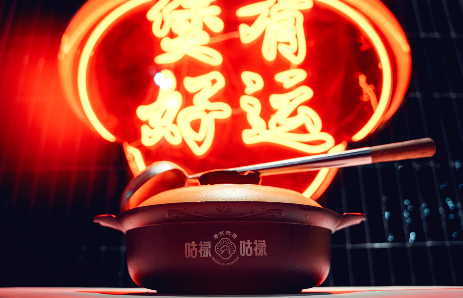 正午圍繞港式雞煲打邊爐的品類屬性與價(jià)值屬性,將二者相結(jié)合,將品牌命名為“咕祿咕祿”。