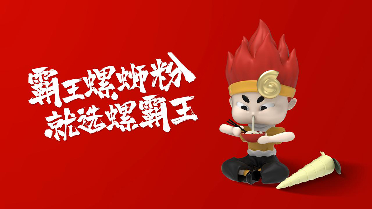 通過(guò)尋找消費(fèi)者心智中的“霸王”文化印記,將螺螄粉的核心材料“螺”融入到人物特征設(shè)計(jì)中,構(gòu)建一個(gè)年輕人認(rèn)同的率真、勇敢、張揚(yáng)的IP形象,彰顯霸王氣質(zhì)。