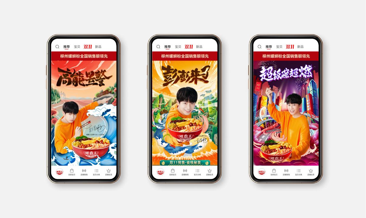 從現(xiàn)代年輕人追求趣味性、個(gè)性化、高顏值的消費(fèi)動(dòng)機(jī)出發(fā),針對(duì)螺霸王活力系列產(chǎn)品我們提出創(chuàng)意性主題【霸王行江湖 煮粉論英雄】。
